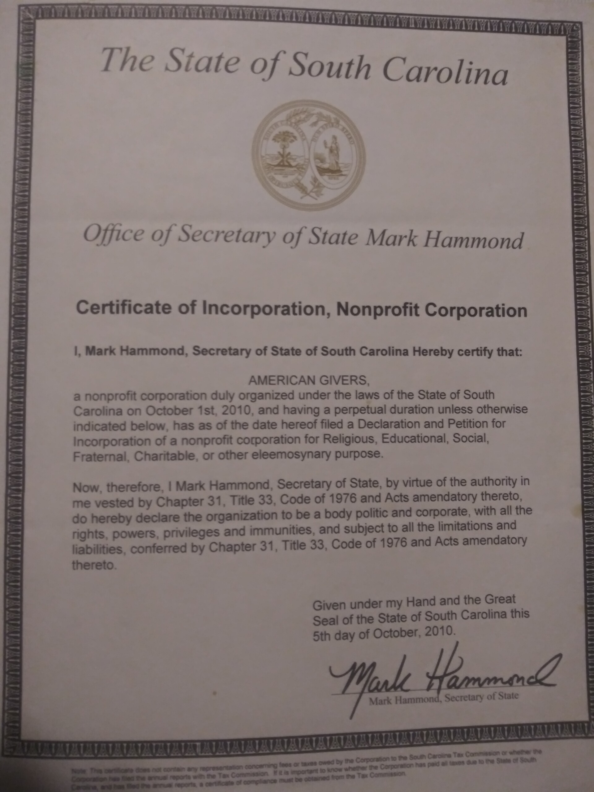 Copy of Certification